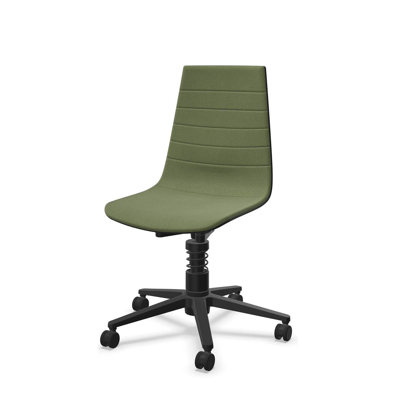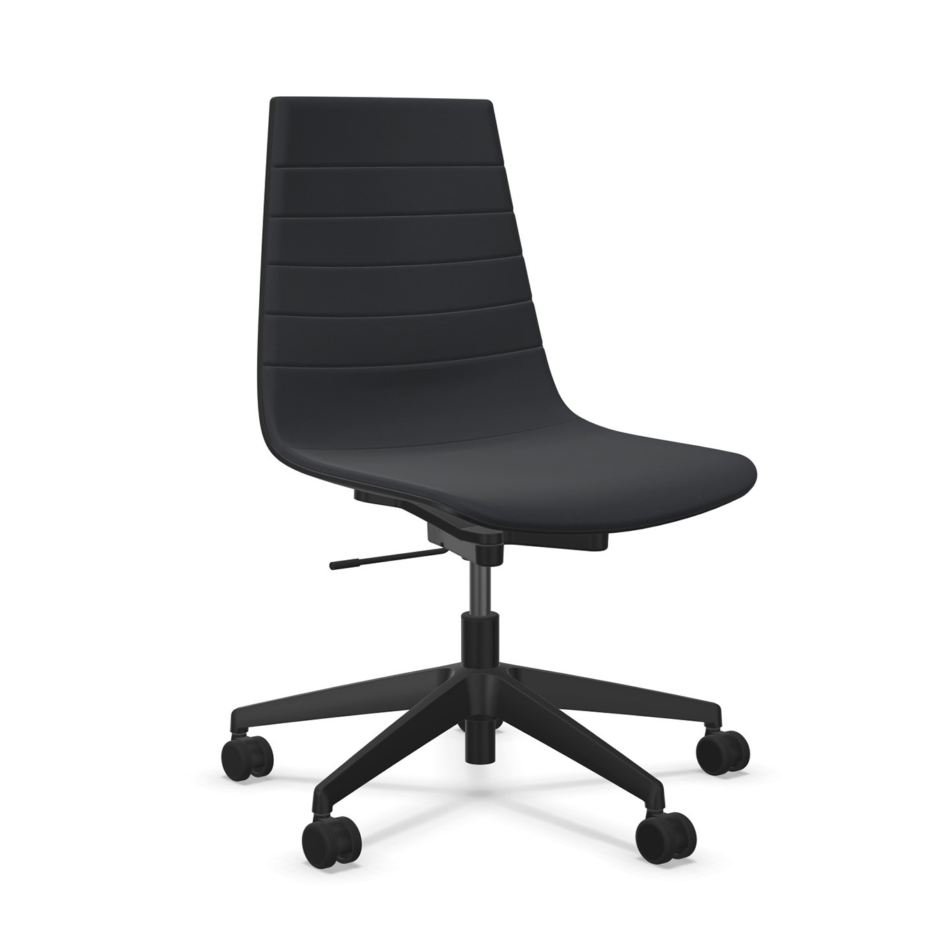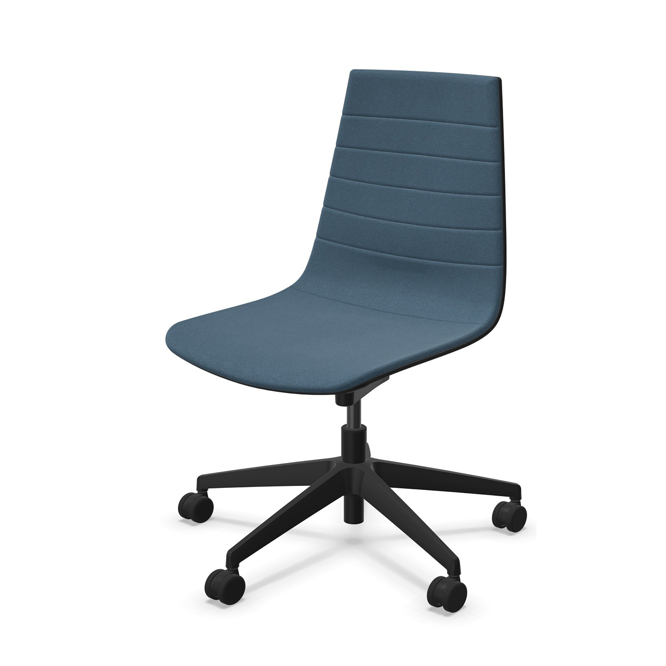 Die hohe, ergonomisch geformte Rückenlehne integriert eine Lordosenstütze und ist gleichzeitig flexibel gehalten